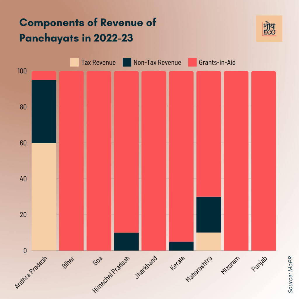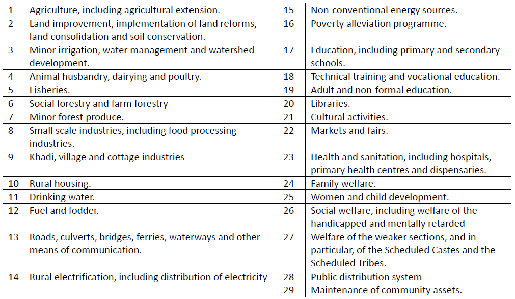 In 1992, the 73rd amendment introduced 29 subjects for which Panchayats were entrusted with the responsibility of devising and executing plans aimed at fostering local economic development and social justice. However, the PRIs ability to workout these responsibilities depends on their limited financial resources. Following info-graph shows the sources of revenue for Panchayats.